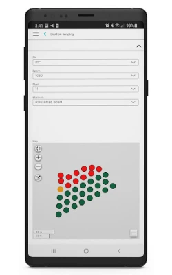 Visualise blastholes through an interactive map and capture samples from your mobile device. The app is spatially enabled, allowing pit technicians or samplers to position themselves on a map in relation to blastholes while working offline.