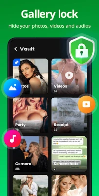 App Lock can hide private photos/videos. Hidden files are not visible in your gallery, only you can view them by entering a password. Keep your private memories from being seen by others.