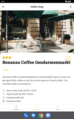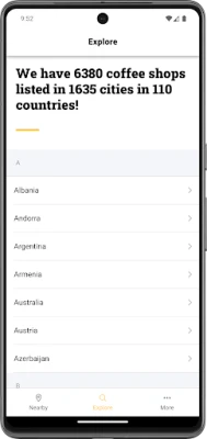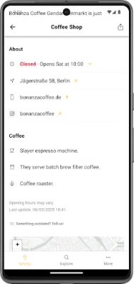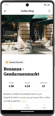 Beany maps all specialty coffee shops nearby and shows you what they offer. Additionally, you can explore our unique curated database of third-wave coffee shops in more than 1500 cities in over 100 countries. These features are free for everyone. Beany only includes authentic specialty coffee places. We do not accept any money from shops or roasters.