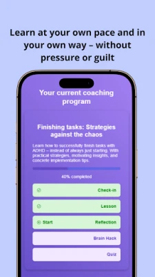 The app is designed for people with ADHD who are looking for practical support to better handle everyday challenges. It helps you establish new routines, stay organized, and achieve your goals.