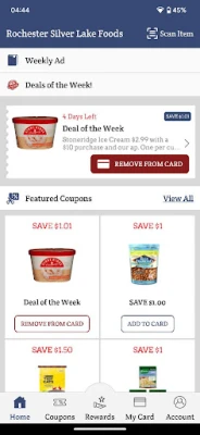 1. Get the The Rochester Silver Lake Foods app. 2. Add coupons and specials to your list in your The Rochester Silver Lake Foods App, and 3. Present digital loyalty card to cashier to scan at checkout for in-store purchase.